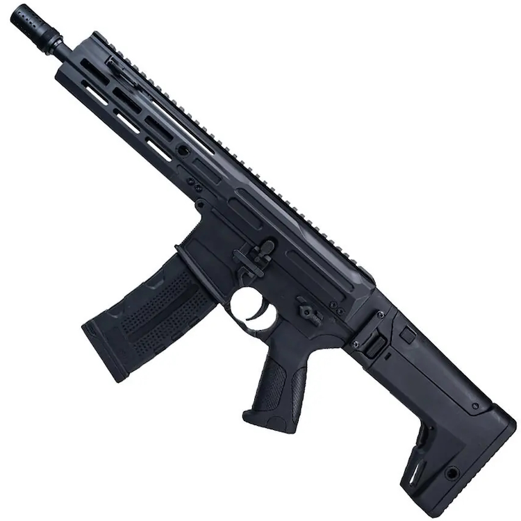 The lower receiver is also made of polymer and is compatible with all AR-style AEG magazines, giving players a wide range of accessories. The fire selector is ambidextrous, making the FLCN 5.56 instantly suitable for both right- and left-handed users. A 6-way folding stock with a 4-way adjustable cheek rest completes the package, making the FLCN 5.56 ideal for players of all sizes. QD sockets on the handguard and stock allow for easy attachment of a sling.