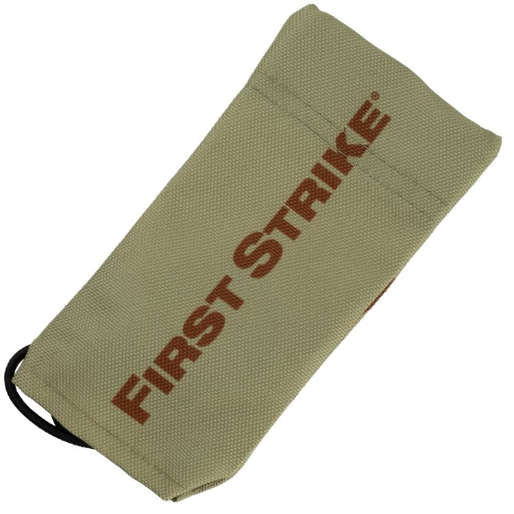 First Strike paintball running sock with logo lettering on one side and First Strike logo on the other side.